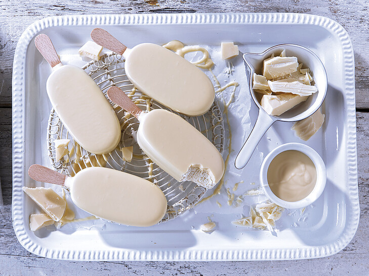 Cremiges Vanilleeis erhält einen knackigen Mantel aus weißer Schokolade. Der Klassiker am Stiel ist süßer Snack und feines Dessert in einem. Eine extra große Portion für langanhaltenden Genuss. Genießen Sie diesen Klassiker als Dessert, nach einem gemütlichem Essen oder als Snack, wenn der Schokohunger kommt.