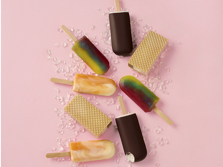 Fusion: Wassereis mit Cola- Zitrone- und Kirschgeschmack.