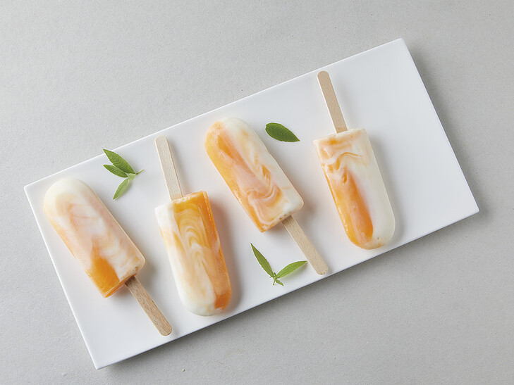 Wassereis mit Maracujageschmack (50%) und Eis Vanillegeschmack (50%).
