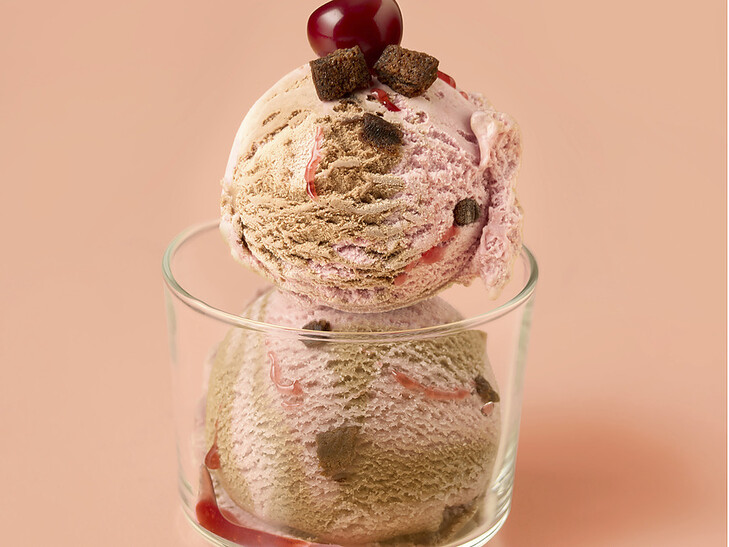 Zwei, die einfach zusammengehören: Cremiges Schokoladeneis trifft auf fruchtiges Sauerkirscheis – kunstvoll verstrudelt zu einem unwiderstehlichen Genusserlebnis. Verfeinert mit einem fruchtigen Kirschsaucenstrudel, der sich wie ein roter Faden durch das Eis zieht und jeder Portion eine besondere Note verleiht. Saftige, kakaohaltige Gebäckstückchen bringen eine besondere Textur ins Spiel – für süße Überraschungsmomente mit jedem Löffel. Ideal für alle, die sich nicht zwischen Dessert und Fruchteis entscheiden wollen. Ob heimlich gelöffelt, stilvoll serviert oder liebevoll geteilt – dieses Eis verführt, verzaubert und lässt Herzen zart schmelzen.