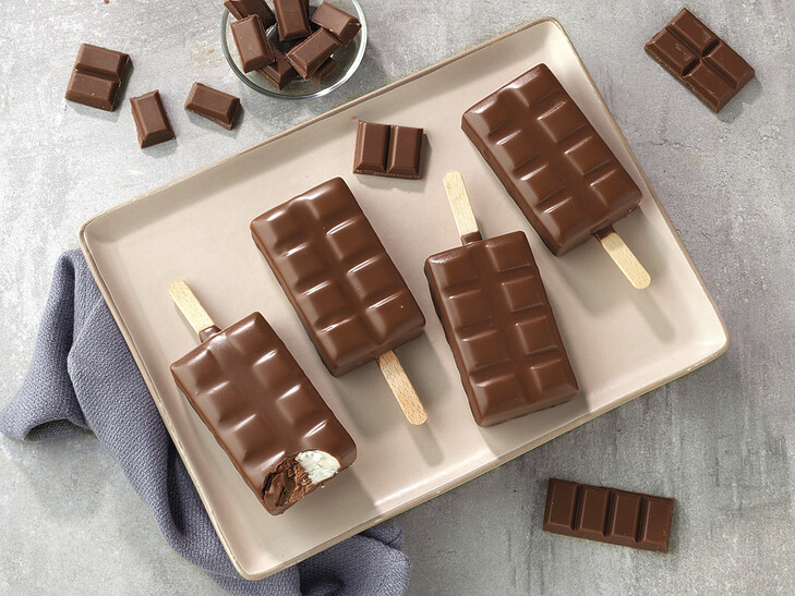 Die etwas andere Schokoladentafel. Der Schokotafel-Eisstiel mit dreidimensionaler Optik bietet ein erfrischend kühles Vergnügen in gleich zwei Geschmacksrichtungen. Eis mit Kakaogeschmack und Eis mit Vanillegeschmack werden von knackiger Milchschokolade überzogen und versüßen spielerisch den Alltag für Klein und Groß.