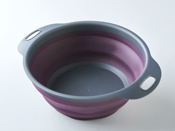 Faltschüssel für Lebensmittelkontakt geeignet. Spülmaschinentauglich und hitzebeständig bis 110 °C.