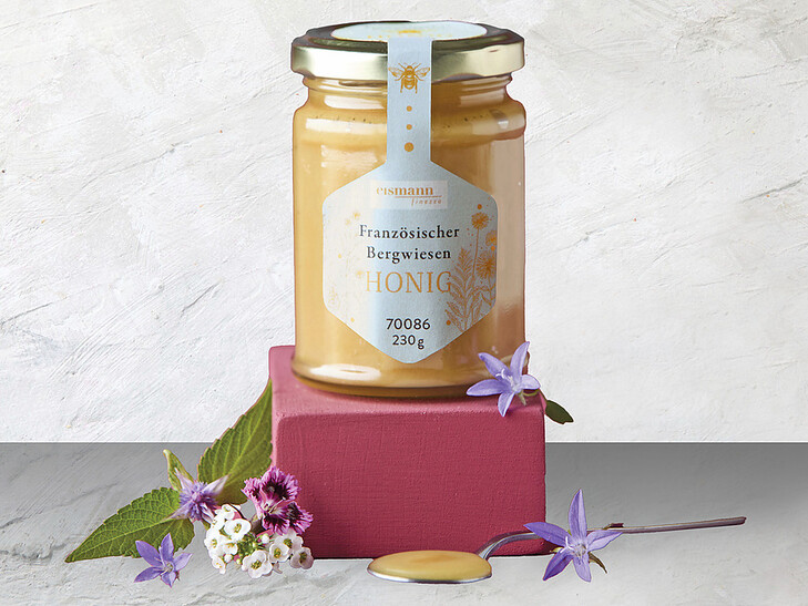 Inmitten der klaren Höhenluft französischer Bergregionen sammeln Bienen den Nektar von blühenden Wiesen. So entsteht ein hell leuchtender, feiner Honig mit süßlich-aromatischem Geschmack – naturbelassen, duftend, voller Charakter.