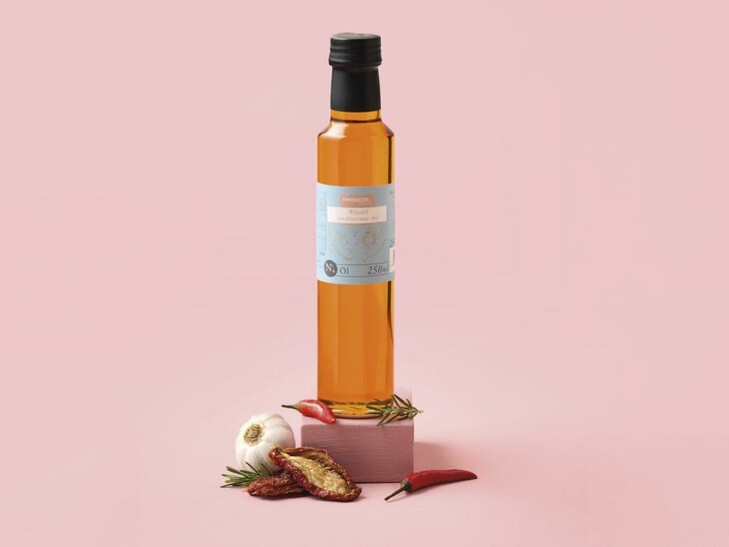 Dieses aromatische Würzöl ist eine Hommage an die Küche des Mittelmeers. Mildes Sonnenblumenöl verschmilzt mit intensivem, nativem Olivenöl extra zu einer harmonischen Basis, die feinste Aromen trägt. Aromen wie Oregano, Knoblauch und Chili verfeinern Pizza, Pasta ebenso wie Antipasti. Die leuchtend orange-rote Farbe verspricht schon beim Anblick Genuss. Ideal zum Beträufeln, Marinieren oder als feiner Abschluss direkt am Tisch.