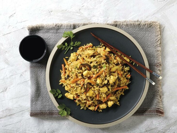 Der Mix macht es: Reis, buntes Gemüse, Rührei, Sojasprossen und Mu-Err Pilze. Fertig gewürzt, beliebig portionierbar.