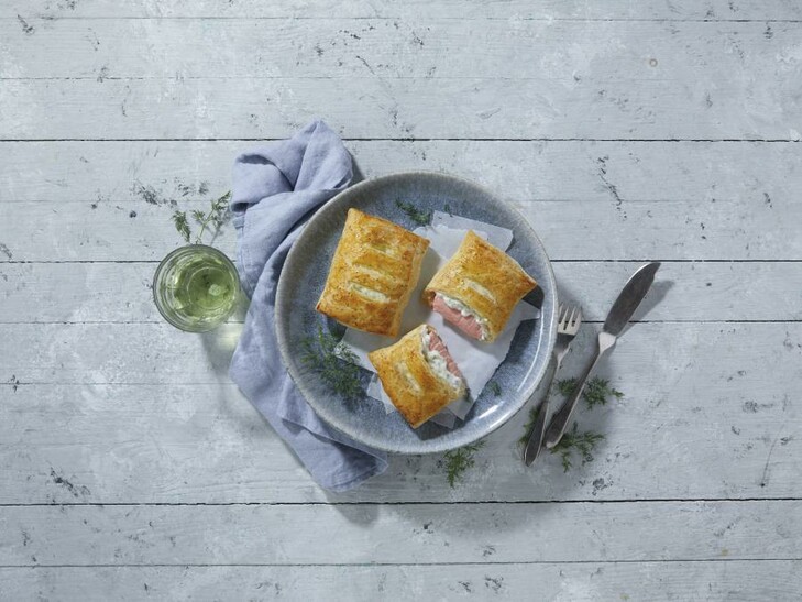 Die ausgesuchte Lachsqualität der zarten Filets sorgt für den vollendeten Genuss. Mit einer exquisiten Käse-Sahne-Creme umhüllt, mit Dill abgeschmeckt und in einem knusprigen Mantel aus Blätterteig angerichtet werden die köstlichen Happen im Backofen zum wahren Gaumenschmaus. Als Vor- oder Hauptspeise eine kulinarische Bereicherung feiner Menüs.