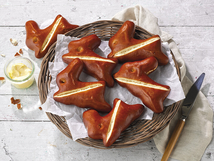 Die Kinder lieben die Häschen ‐ Die Laugenhäschen sind bei den Kindern wahnsinnig beliebt und für die Schule bestens geeignet. Schmecken, wie Laugenbrötchen vom Bäcker.