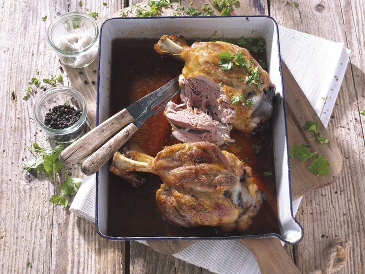 Einfache Zubereitung, ‐ Die Haxe ist sehr leicht zum Zubereiten. Das Fleisch trennt sich mühelos vom Knochen und schmeckt hervorragend. Unsere Gäste hat es sehr gut geschmeckt. Eine Haxe reicht problemlos für einen Erwachsenen guten Esser. Als Beilage hatte ich Blaukraut und Spätzlen. Ich würde die Haxe immer wieder bestellen, ist also eine klare Empfehlung.