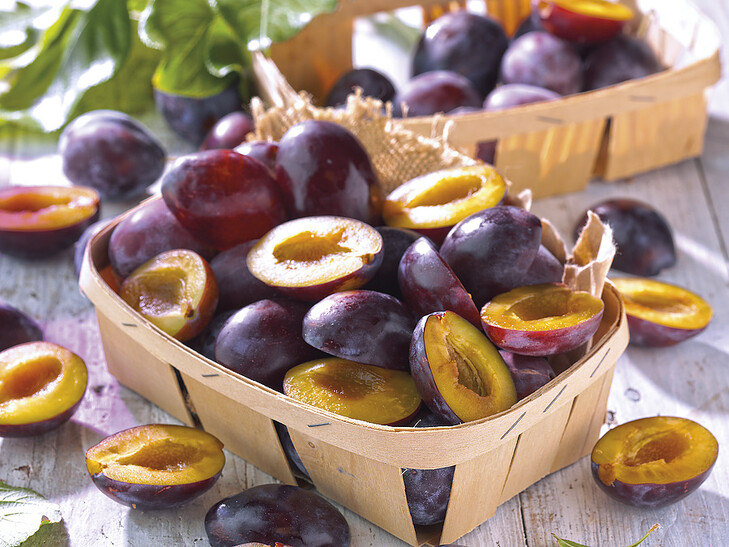 Optimal für einen leckeren Pflaumenkuchen ‐ Die Pflaumen lassen sich für einen Kuchen optimal verarbeiten. Auf einen Mürbteig -Boden die gefrorenen Pflaumenhälften legen, Streusel darüber und ab in den Ofen. Das schmeckt jedem.