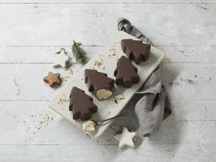 Dieses Eisdessert ist der Höhepunkt einer festlichen Tafel oder die Überraschung zum Adventkaffee. Unter der knackigen kakaohaltigen Glasur verführt cremiges Haselnusseis den Nascher. Beliebt bei allen Kindern und wenn es einmal besonders festlich werden soll, dann das Dessert auf einen roten Saucenspiegel setzen, z.B. aus unseren Waldfrüchten.